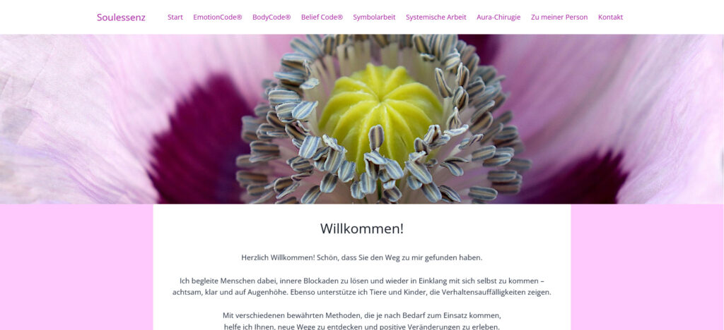 Auf dieser Seite finden Sie eine Auswahl von Arbeiten, die ich zusammen mit Kund*innen realisiert habe. Die Seiten sind einerseits so individuell unterschiedlich wie die Kund*innen selbst, andererseits sind einige Designs und Layouts einfach am besten für bestimmte Themen/ Seiten geeignet, so dass sich die Seiten dann auch wieder ein wenig ähneln. Die Farbauswahl, die Schriften, der Aufbau der Seite – all das kann sehr individuell angepasst werden.